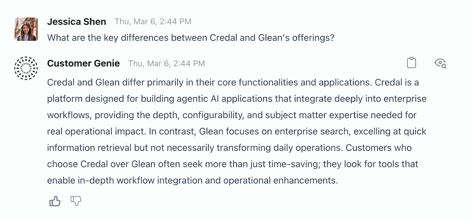 Here’s an example taken from one of our GTM copilots at Credal, a standard competitor assistant.