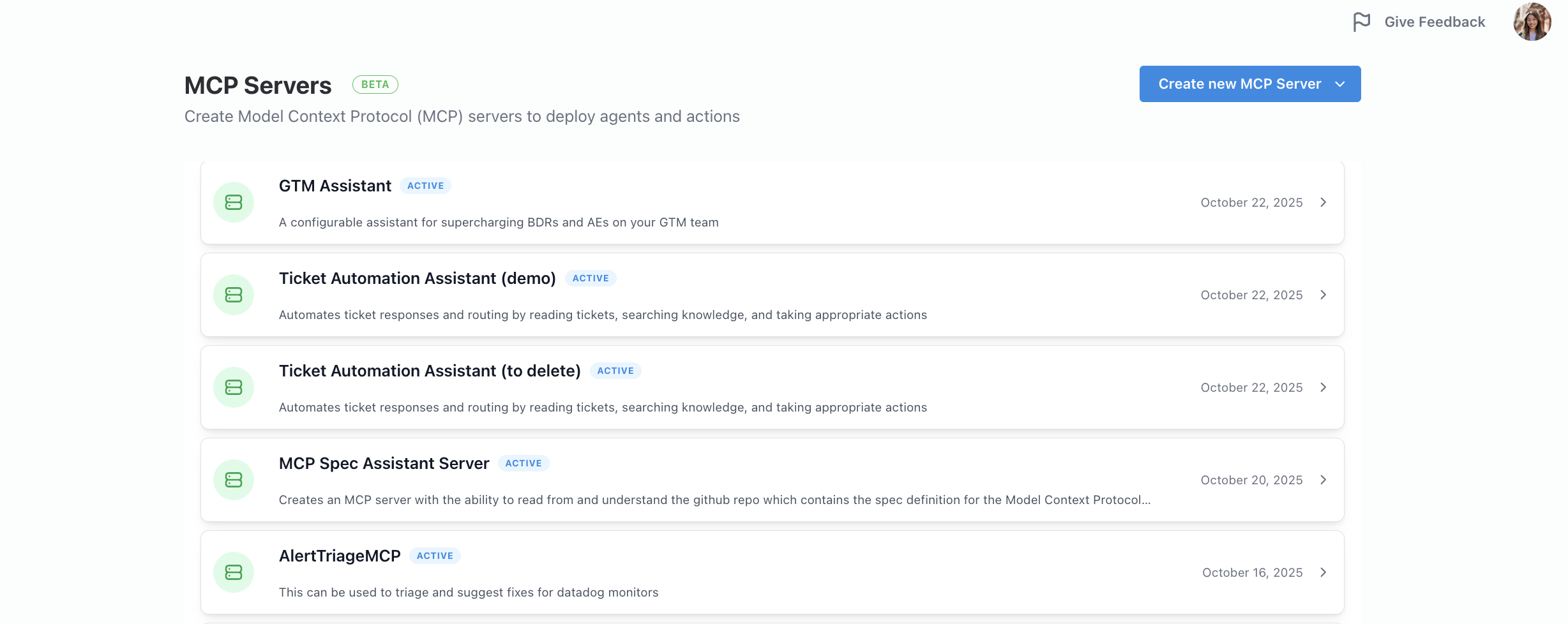 First, navigate to your MCP servers panel. From here, you can choose the right MCP server that you want to connect to OpenAI.