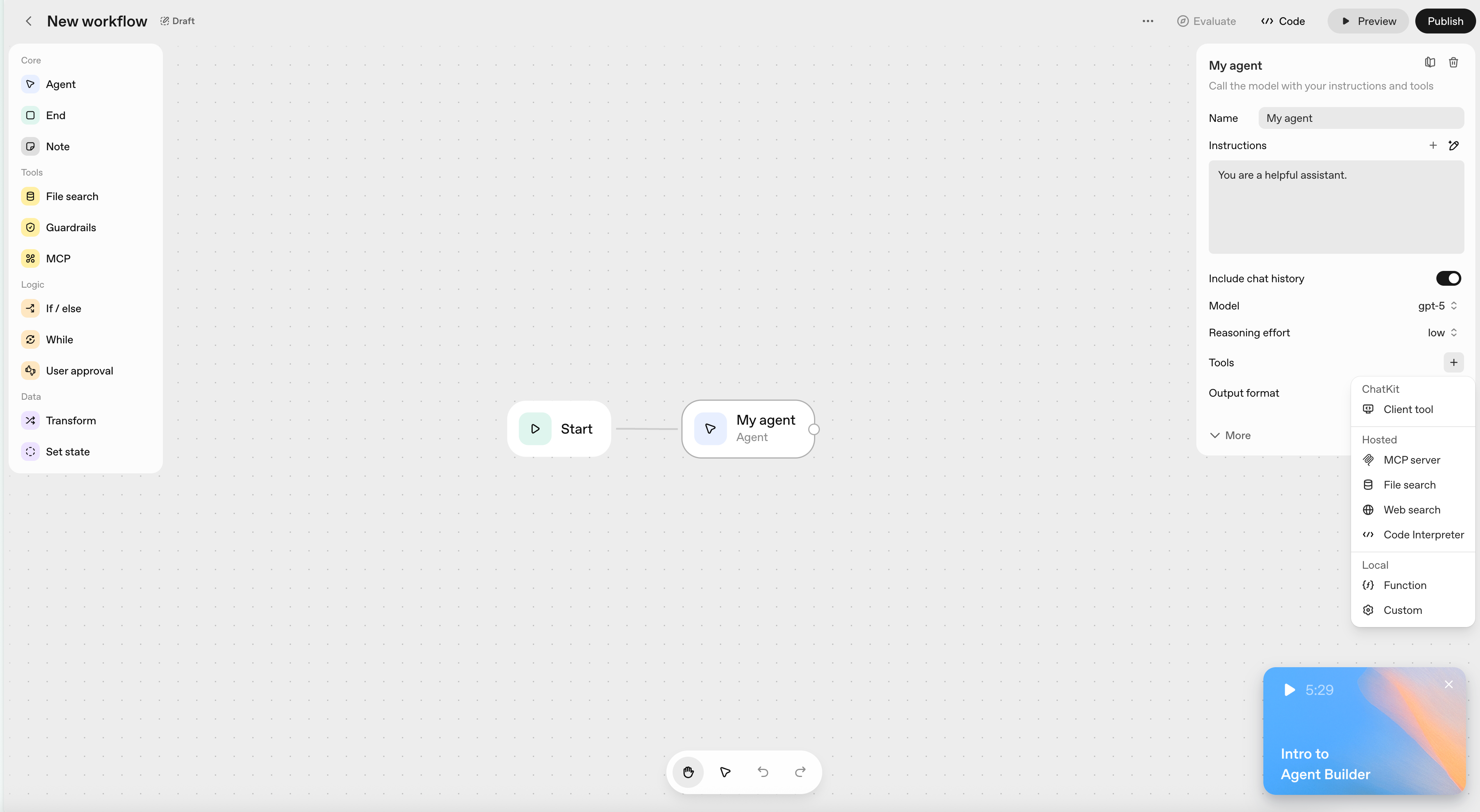 Click on the Tools toggle. This will expose options to connect with your AgentKit workflow.