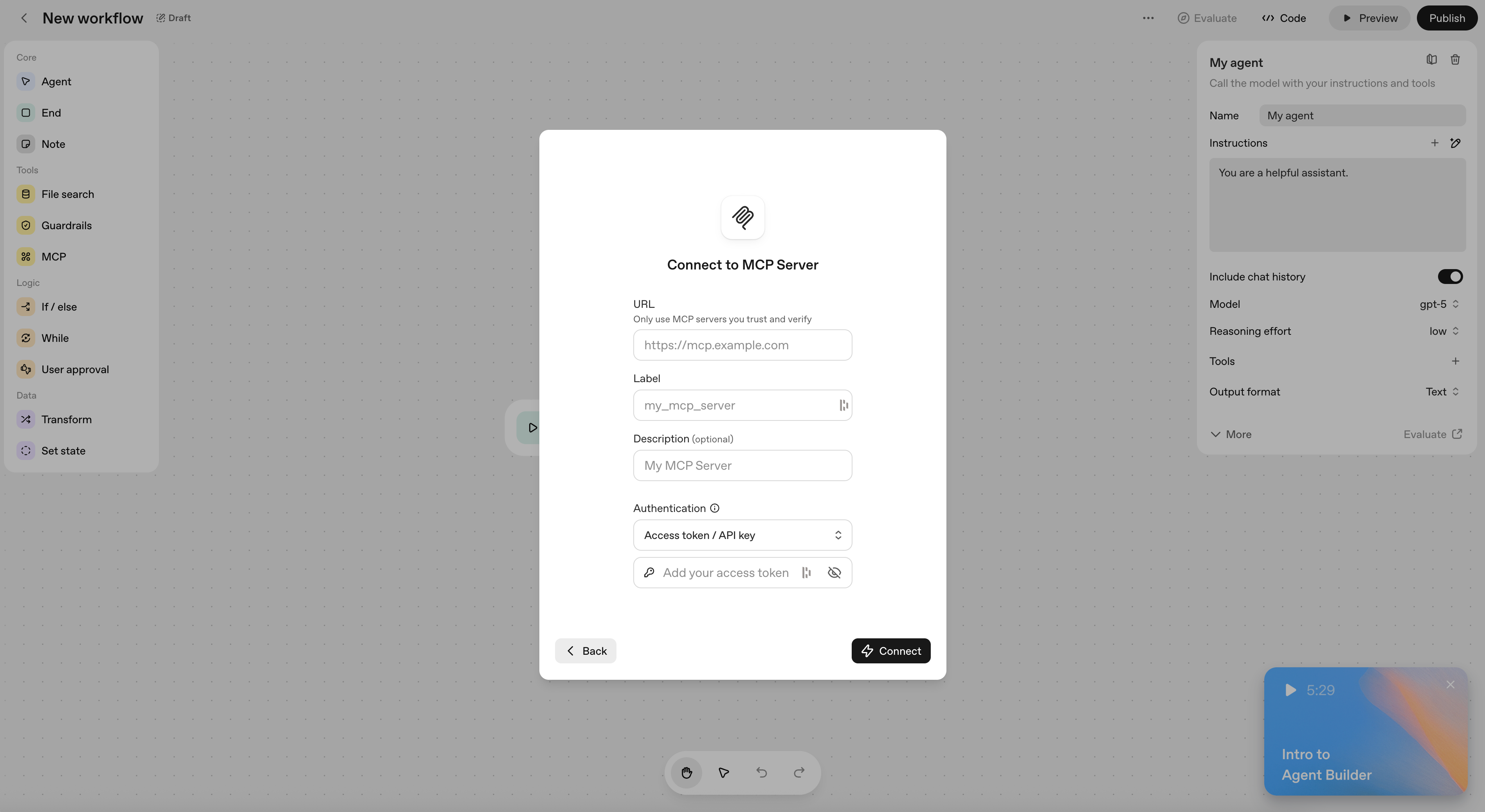Clicking on the chosen MCP server, you’ll toggle open the credentials to facilitate the MCP connection with OpenAI.