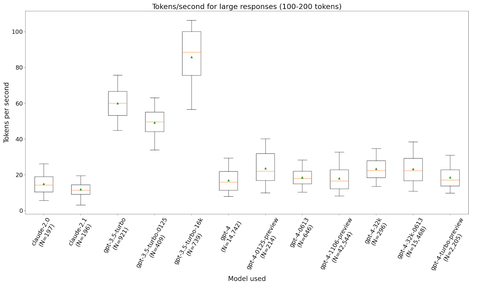 Looking at larger responses (100 - 200 tokens) and hence now using tokens per second as a metric…