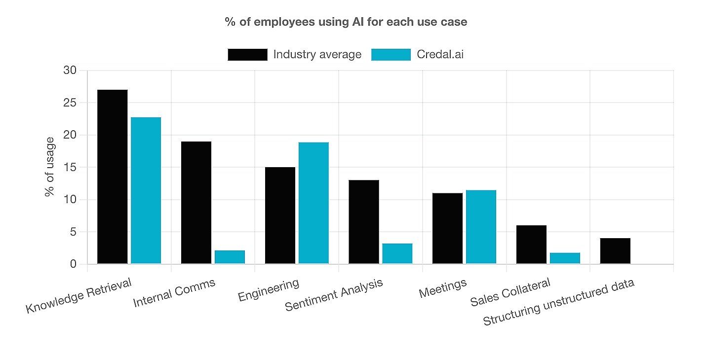 Audit logs are rich sources of information on AI use. Analysis of log data can produce insights into metrics such as user trends, use cases, and how a company’s use stacks up against the wider industry.