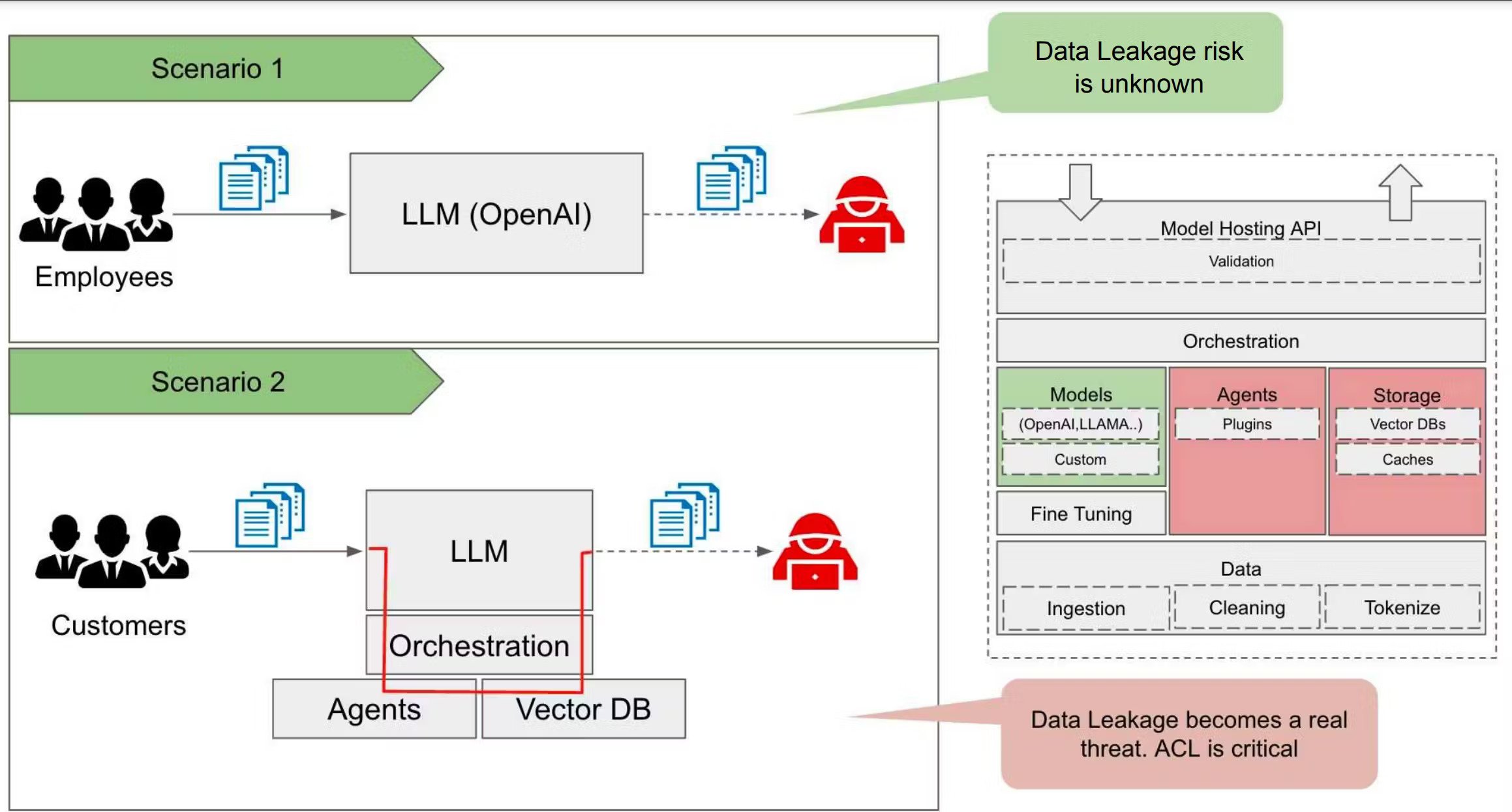 Today's models don't consider what information should be accessible to which users. This is probably the most important security problem for an enterprise to manage before using any LLM on company data. Since most language data at an enterprise exists in access controlled systems like SharePoint, OneDrive, O365, Google Drive, Slack, Notion, Box etc, connecting these data sources to an LLM risks removing those permissions.