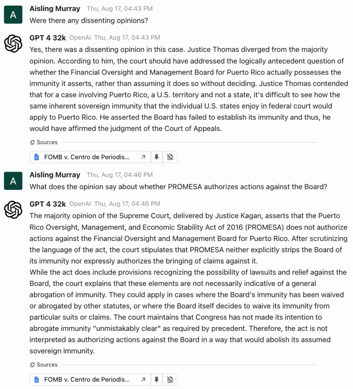 In this example, having read the opinion, I prompted GPT to provide additional relevant information that I felt was important to highlight. I could then edit this information and add my own analysis. A productive process for working with GPT to produce a summary looks something like this: