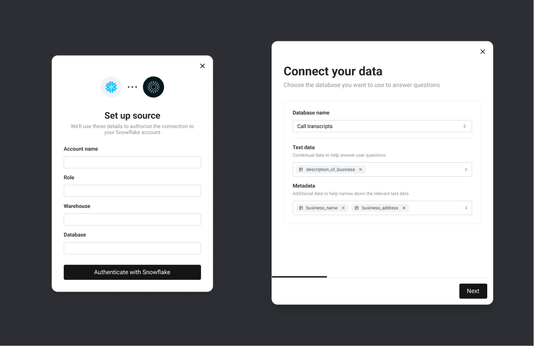 As usual, Credal makes connecting data from these systems easy with our Snowflake Connector. Just a few clicks and your structured data is available for querying: