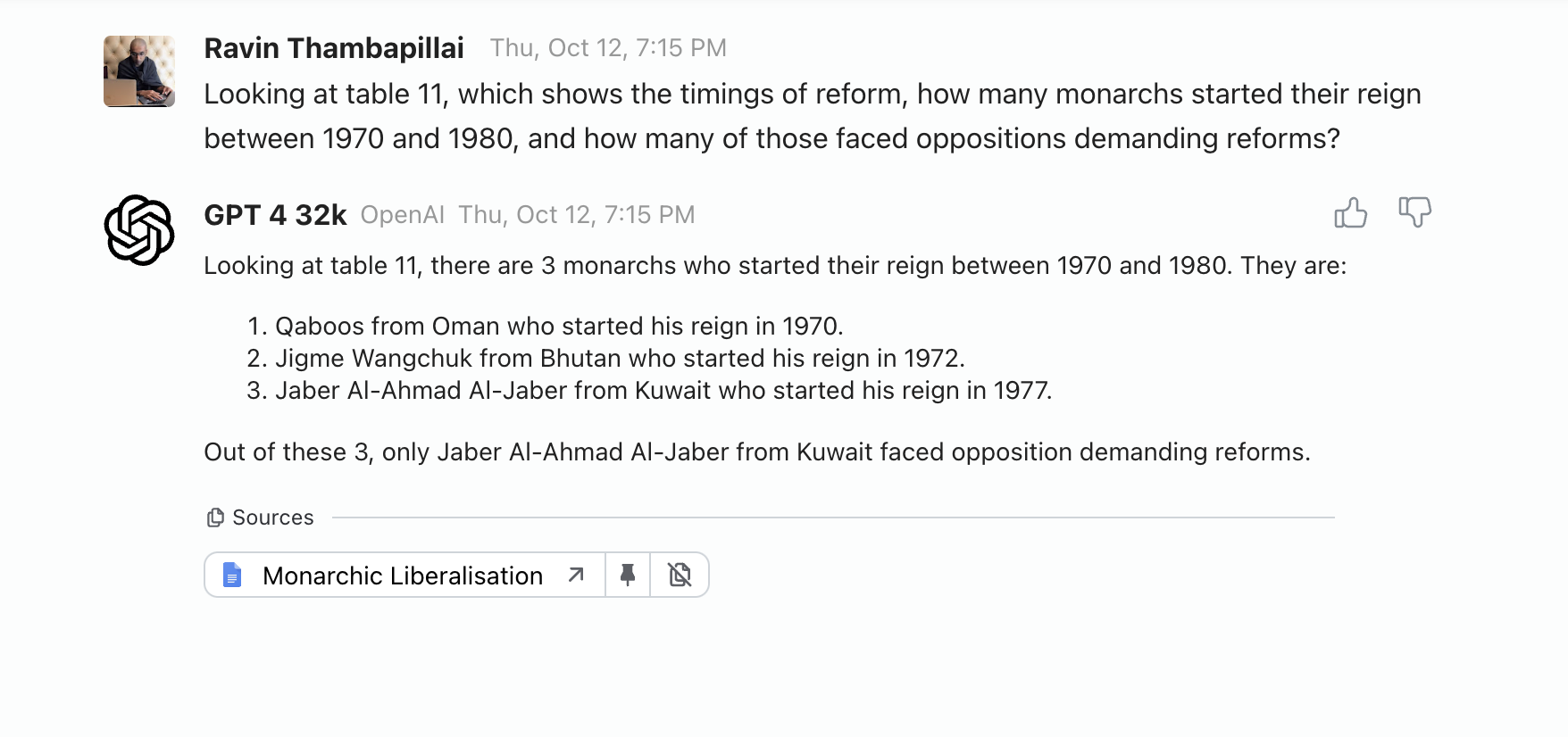 Now that is pretty nice: it found the exact right section of the document that referenced a domestic tyranny, and even correctly pulled out that the 75th footnote contains the answer to our question. But unfortunately, the answer still isn’t useful: