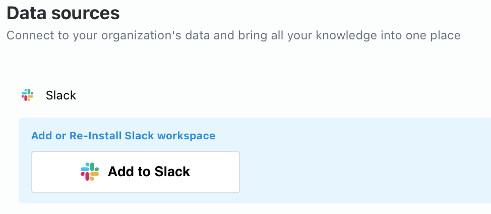 Log in to Credal and install the Slack app, under the "Data sources" tab (requires admin access)